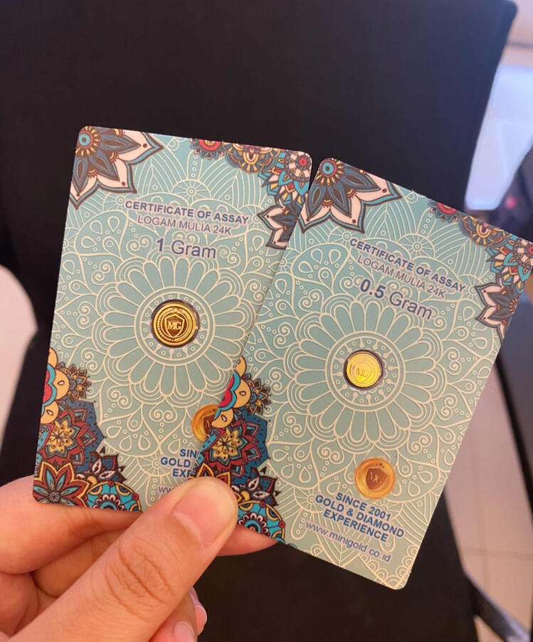 Logam Mulia MINIGOLD adalah Logam mulia 24 karat yang bersertifikat SUCOFINDO dan G-Lab Pegadaian, yang memiliki gramasi mulai dari 0,005gram hingga 1,5gram.